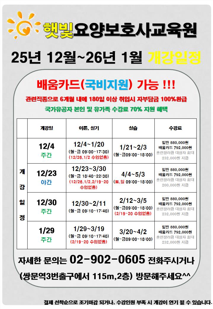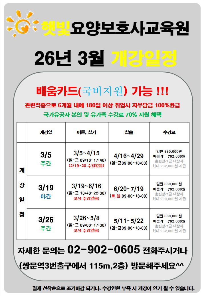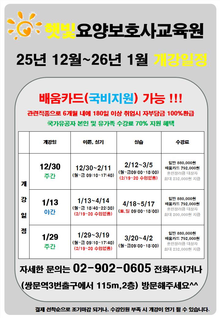 예금주 : 햇빛요양보호사교육원주식회사손순화